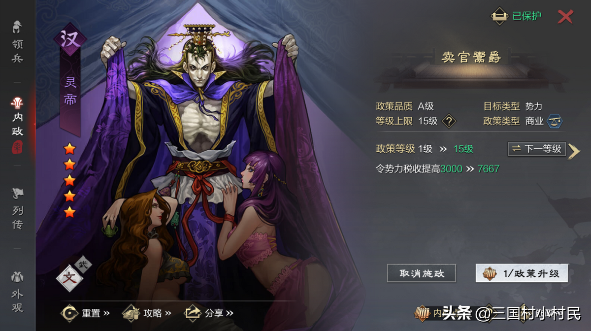 上面这些是我强力推荐平民拿来转内政的武将,经济、资源、等级都涵盖在内了,基本上这几个武将上完后,开荒也结束了。总的来讲,内政适合拿来用的武将就那些,平民完全没必要特意去找人配内政武将,自己都能轻松搞定了。