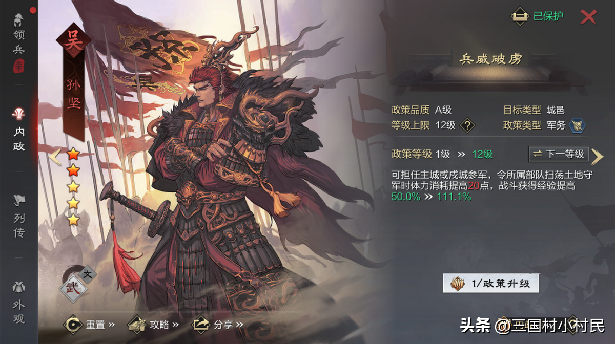 不管对于平民还是大佬,孙坚都堪称“内政滴神”!前期练级在战法和等级都不高的情况下,练级战损是非常高的,而孙坚的出现改变了这种局面。