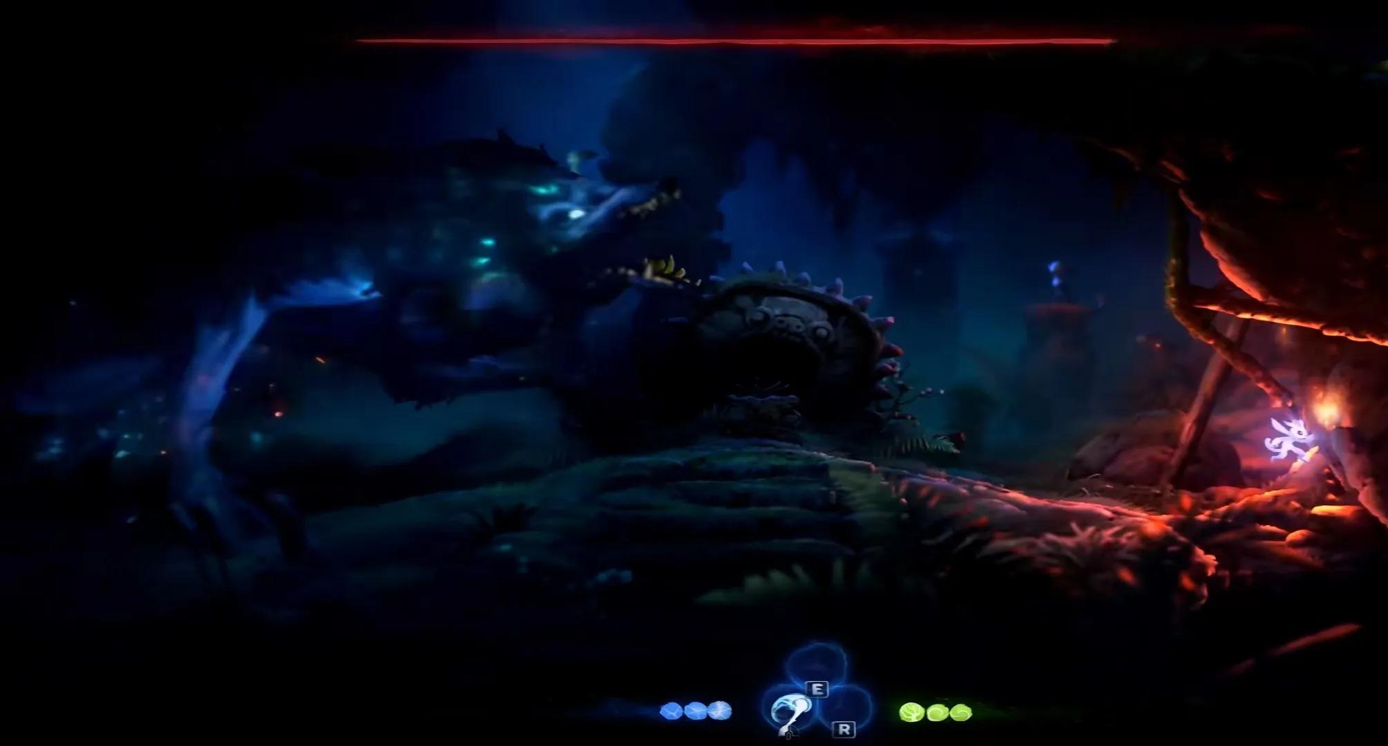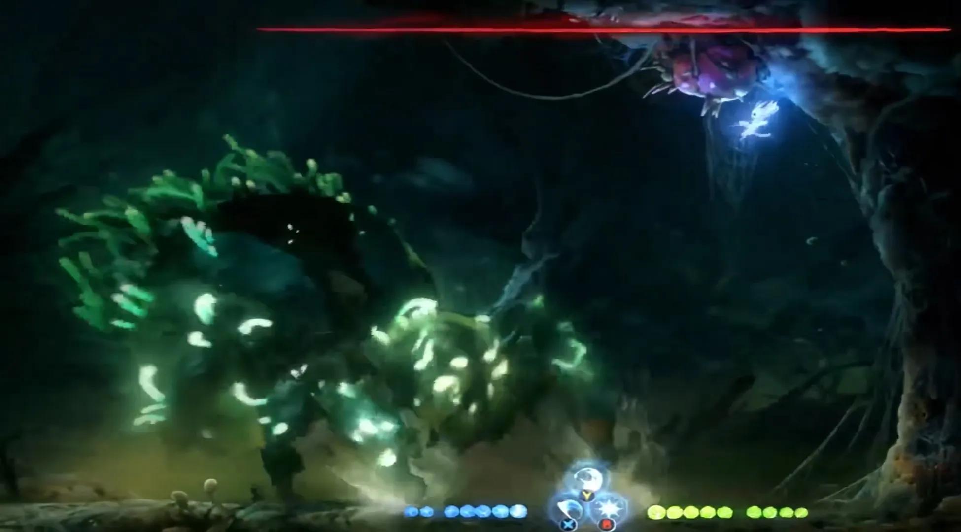 刚通关困难模式的奥日2精灵与萤火意志。打恶狼的时候,先拿着火把逃到最右边,