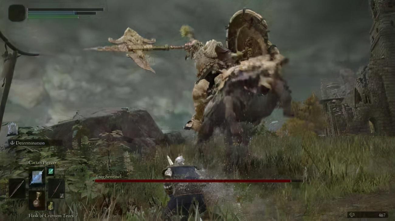 虽然这个BOSS可以前期先不打,但作为一个为了体验游戏的玩家,我成功的尝试了在不逃课的情况下打了打大树守卫,虽然我玩的是流浪骑士,有100%物防盾,但他这个高移速,我只能尝试卡他的攻击帧。而且前期的时候没有去坐火,也没有领马,这给我的感觉比噩兆还要难打