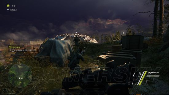 继续跟着Robert走回来到敌人的据点,注意有两个哨兵,你可以选择近战杀死,也可以直接用步枪射杀,都没影响。