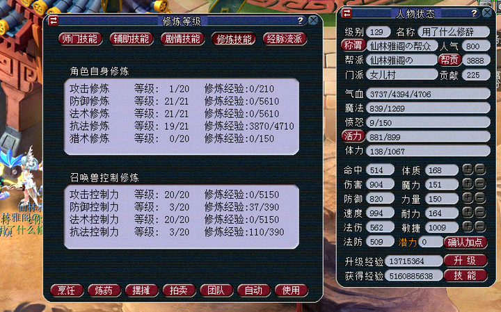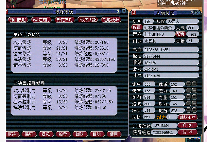 怎么做到低成本129五开抓大小鬼20对?必备条件就是人输出修为必须点满,宝宝攻修15级以上,全力2400+伤害,320速度。阵容组合为4+1,法宝选择1大鼓2小浪1试剑石,人物敏捷1100+4级锐步,无底洞5速。月光3女娲2地五,敏捷套开3孔紫固浮石,武器500+伤害,女儿暗器160,打符+带固伤腰带基本可以全清小怪。