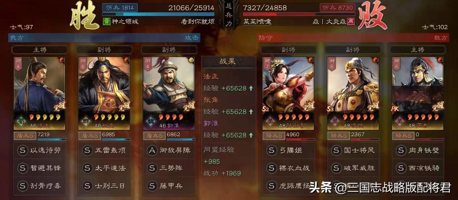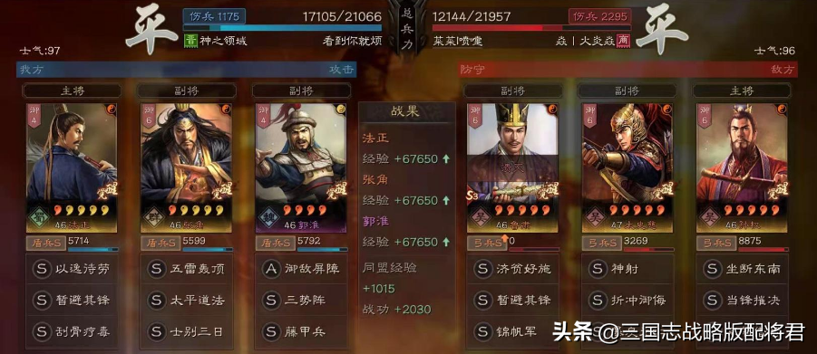 碰撞满红顶配陆逊吴枪,靠着兵力优势战平了,其实小亏一些,藤甲碰火没白给已经不容易了。