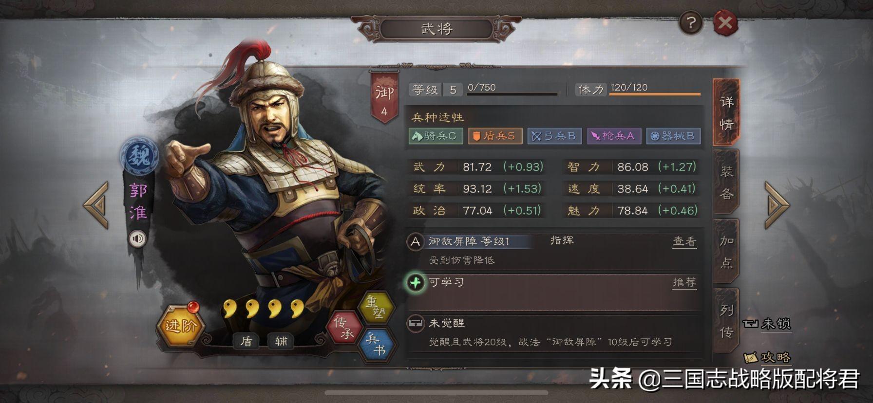(副将)郭淮,战法搭配:三势阵+藤甲兵