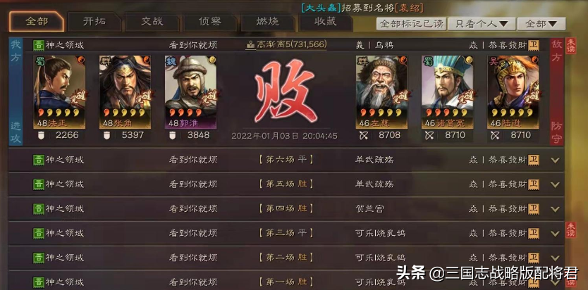 最后一张一穿六的战报图,如果第七次不是遇到陆逊估计还有机会平!