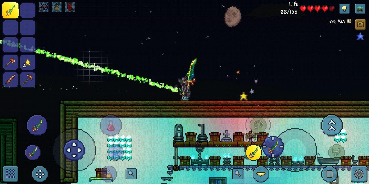 2、在泰拉之刃进行攻击时,会发出一道绿色的剑形状的光,这种光可以提供光源用于照亮,剑只能向一个方向攻击,被攻击到的地方会产生高额伤害。如果攻击对象为一群人,使用泰拉之刃是一个非常不错的选择