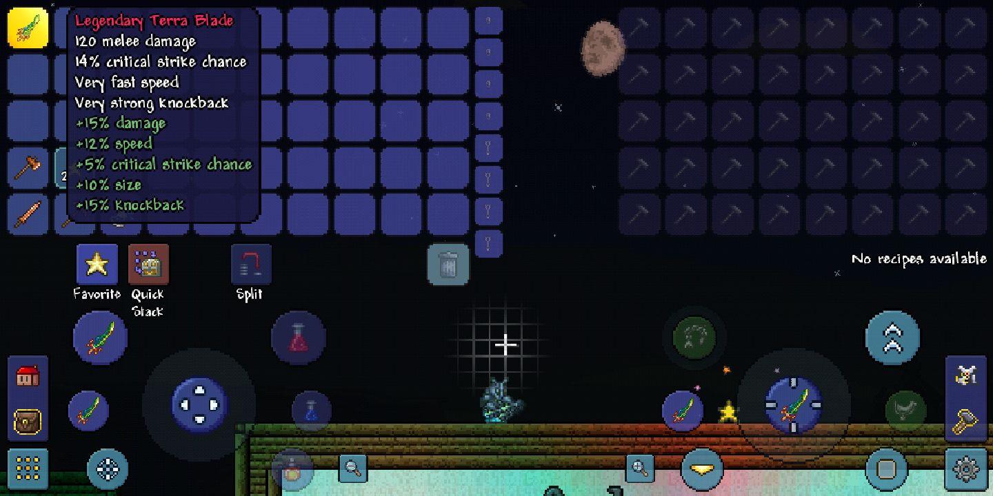 1、泰拉之刃是泰拉瑞亚中的一款近战武器,它也被誉为1.2版本中的最强者。泰拉之刃的基础伤害为95,附魔后的武器攻击力加倍,最高可达到500,在泰拉之刃攻击时,有百分之4的几率会产生暴击