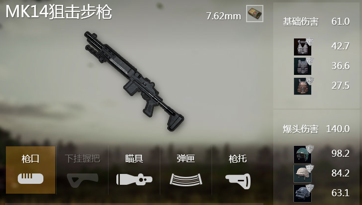 MK14是一把唯一可以开全自动模式的狙击枪,可以连射就是它最大的优点了。射程也很出色,但是在威力方面就优点尴尬因为MK14无法一击毙敌。MK14这把枪太难驾驭所以不推荐萌新玩家使用。