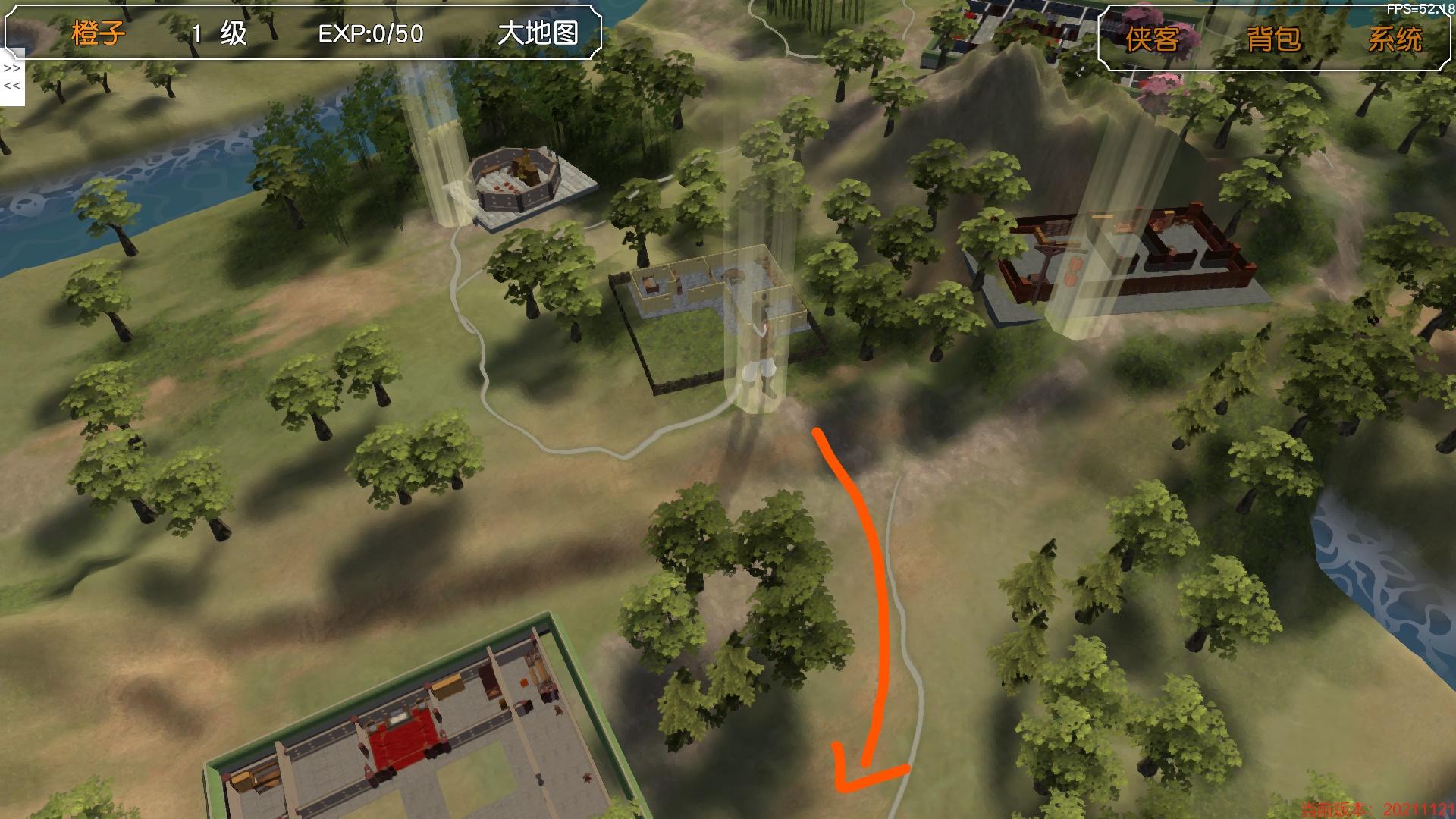 一切就绪,出门,根据箭头进入大地图
