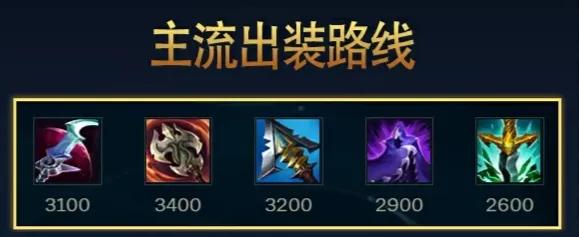 主流出装路线:暗行者之爪+贪欲+赛瑞尔达+巨蛇之牙+夜之锋刃