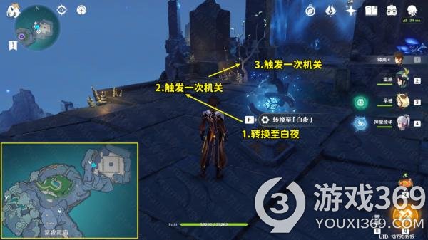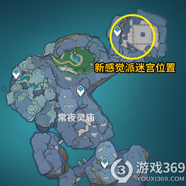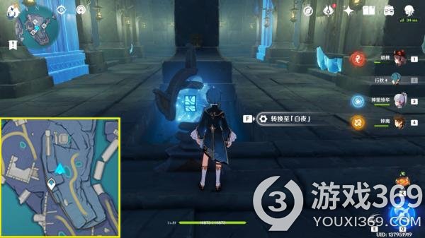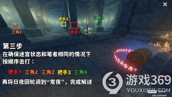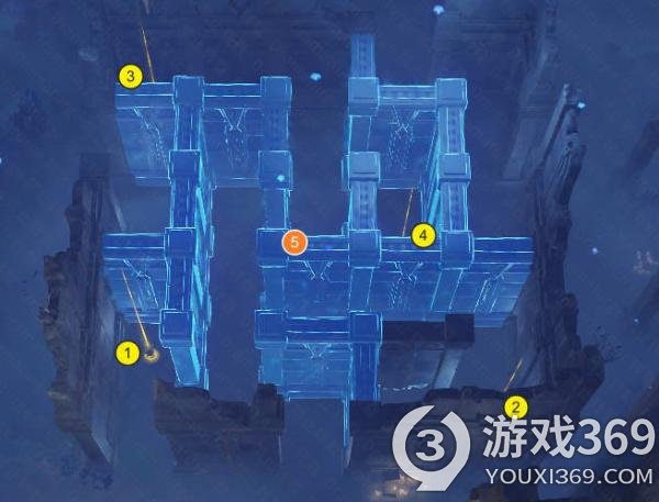 (3)在“常夜”,我们从左下角进入迷宫。触发1~4号位的水元素方碑,即可打开5号位置的天窗,通过迷宫。