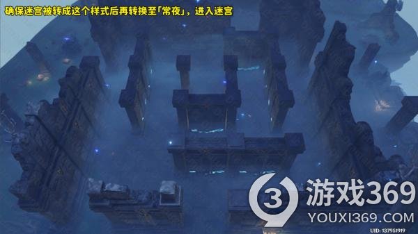 (2)如果你已经转动过迷宫,你需要确保迷宫转成如下图这个状态。在这个状态下切换至“常夜”,进入迷宫。