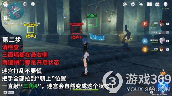 (2)如果你的迷宫处于初始状态,请按顺序击打:把手1,把手3,三角4,三角4。