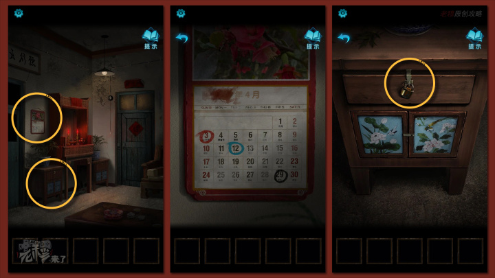 用眉笔在卫生纸上画咒符,线索是之前书页最后一页,完成小游戏,拿到标注着节气的木匣子,现在要做的是要将三盏节气灯点亮