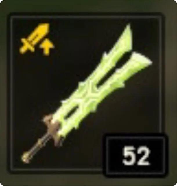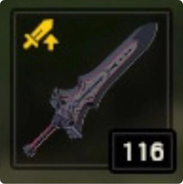 5.116攻近卫大剑,潜行刺杀或者人马上背专用,塞尔达传说旷野之息中屠龙刀级别的大剑。目测6次血月可获得金色附魔116攻击。