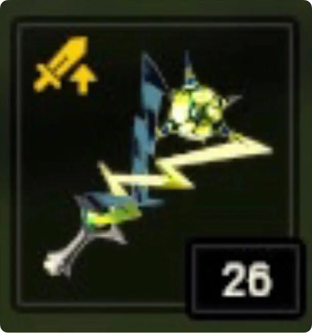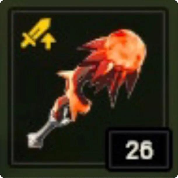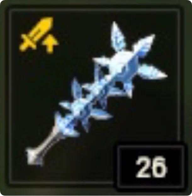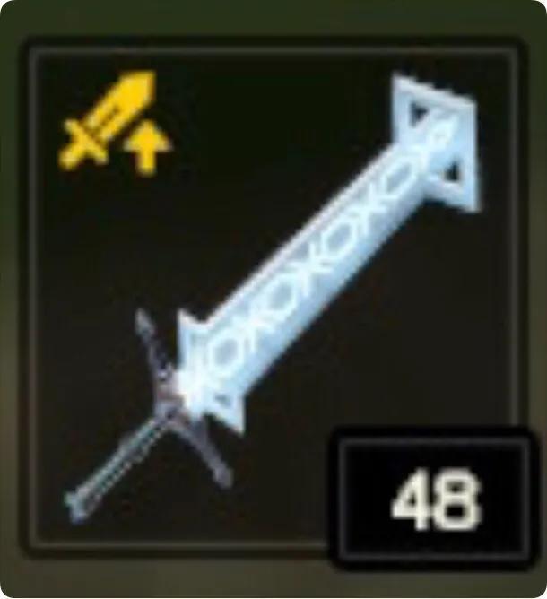 科幻拉风的外形,在古代兵装套1.8倍伤害加成下,有108伤害,是最强单手武器,由于是古代武器,具有不被雷击,且守护者伤害+30%的BUFF!