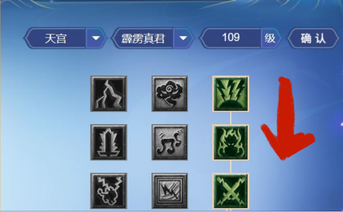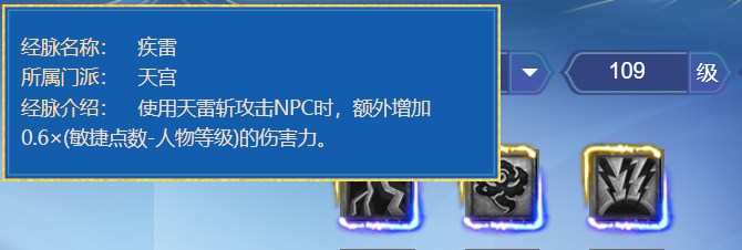 敏天宫的经脉一般选择的是“霹雳真君”的222(“疾雷”+“伏魔天书”)支线,输出主要靠“天雷斩”。