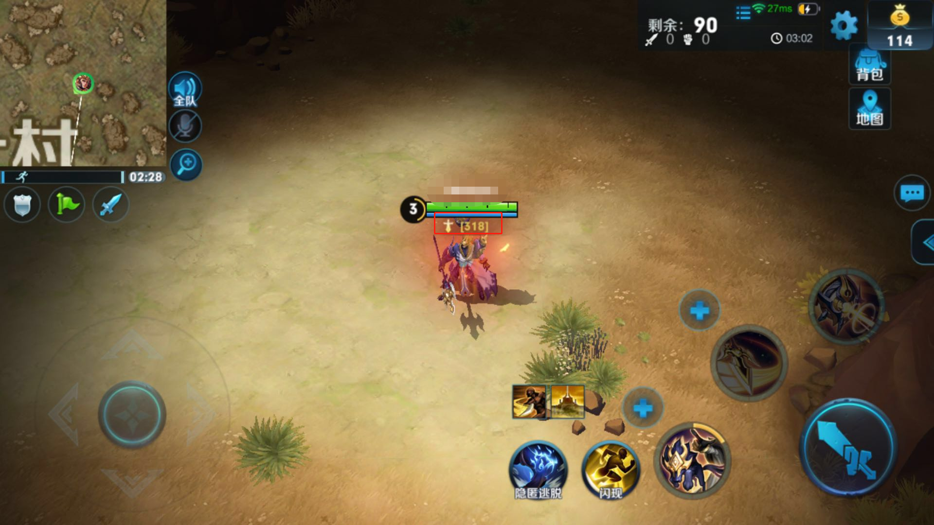 所以落地后先迅速升到四级,然后不要恋战,快速寻找宝箱升级装备,刷野攒钱买属性,等到自己的战斗力(名字下面有明显显示)到2000左右以后,就可以开始卡沙暴边缘(毒边)抓人了。