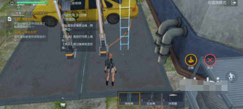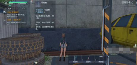 4、点击右侧的“爬梯”就可以使用伸缩梯了,小伙伴们要注意伸缩梯的使用时间只有10分钟,超过10分钟之后就会销毁了哦。