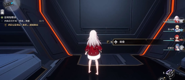 1、首先来到下图空间站的位置,玩家需要向科员们打探谈怪的真相,需要需要发出奇怪声音的门;