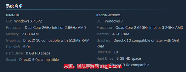 显卡:DirectX 10兼容512MB RAM