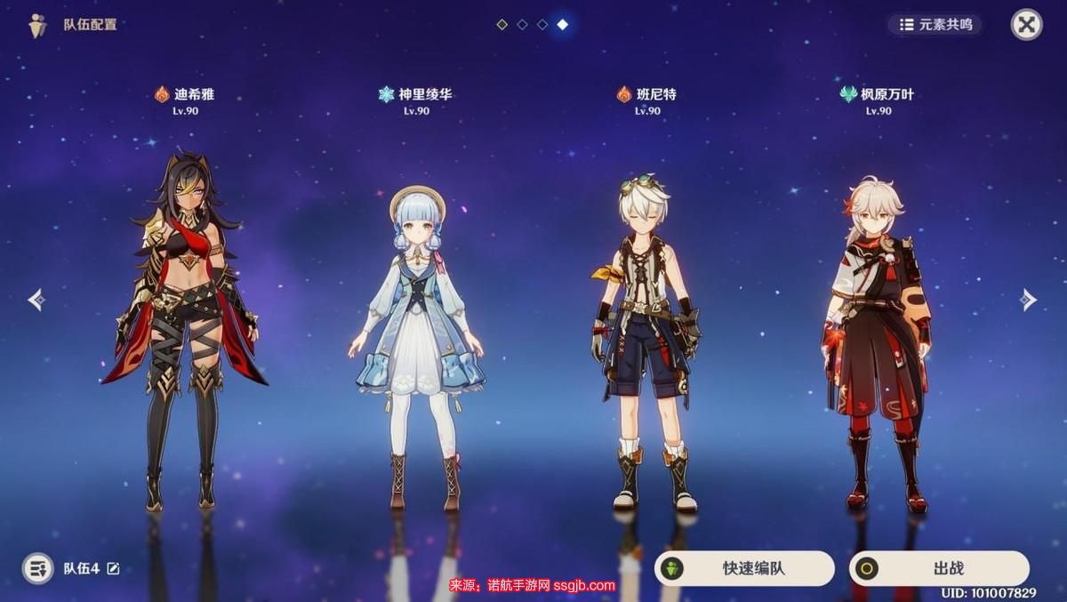 配队角色为:迪希雅+班尼特+神里绫华+万叶。