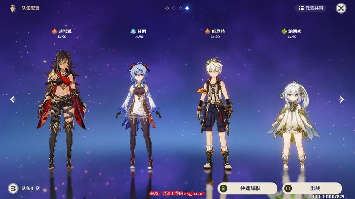 配队角色为:迪希雅+甘雨+纳西妲+班尼特。