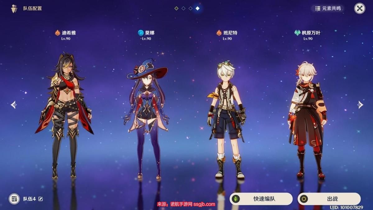 配队角色为:迪希雅+班尼特+莫娜+万叶。