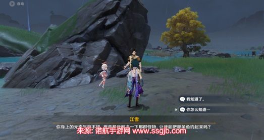 a. 使用传送点到达望舒客栈,然后向东北方向飞行,找到江雪在河边等待。