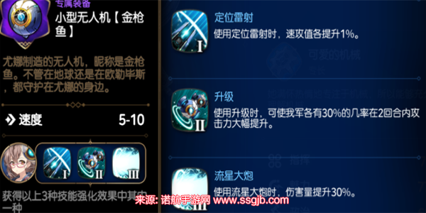 用无人机攻击所有敌人后,使自身速攻值提升目标数量×6%。使除外自身外的全体我军人员速攻值提升目标数量×2%。根据速度等比提升伤害量,敌人目标数量少于3人时,伤害量随目标数量减少而提升;
