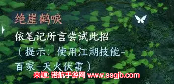 通过完成奇遇《绝崖鹤唳》,我们成功获取了逆水寒手游中的天火伏雷技能,我们需要在三清山去通过跳崖来触发奇遇,通过跳崖、对话交互和任务建议,我们完成了一系列步骤,并最终领悟了这项强大的江湖技能。