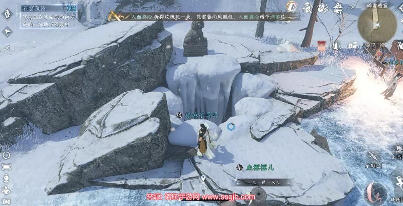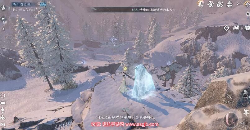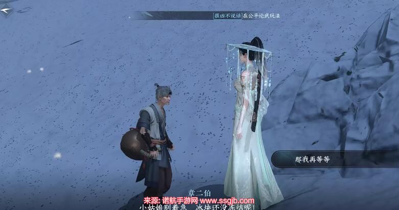 8、之后按照任务继续走,当暴风雪来了之后先等待一会,然后找到章二伯打冰块。