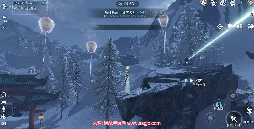 7、完成之后拿起旁边的弓箭射向空中的孔明灯,全部射中之后即可通过游戏。