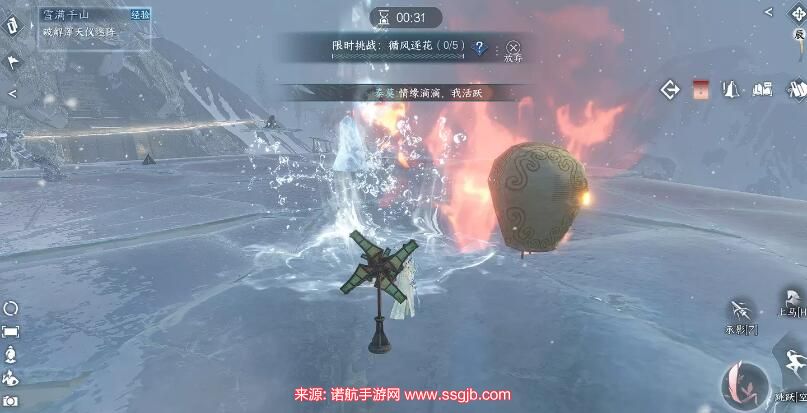 2、然后跟随任务的指引可以在山上找到被冻住的风车,使用火技能将其融化然后转起来。