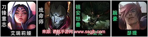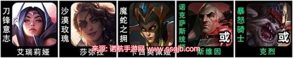同样也是强力单卡+强力羁绊的组合,对比于3诺克萨斯的构筑,烬的输出可能会偏慢,比较依赖2星刀妹提供的坦度